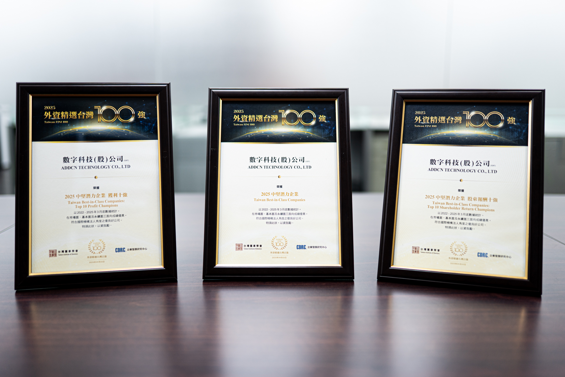 由台灣董事學會與企業發展研究中心舉辦的「2025外資精選台灣百強」(Taiwan FINI 100)日前公布得獎企業名單,數字科技憑藉2025年市值達新台幣109億元,以及2022至2024年營收複合年均成長率7%、平均營業利益率39%與平均股東權益報酬率35%,榮獲「2025外資精選台灣百強」(Taiwan FINI 100)之「中堅潛力企業獎」,並於169名中堅潛力企業中,再獲得「獲利十強」與「股東報酬十強」殊榮。